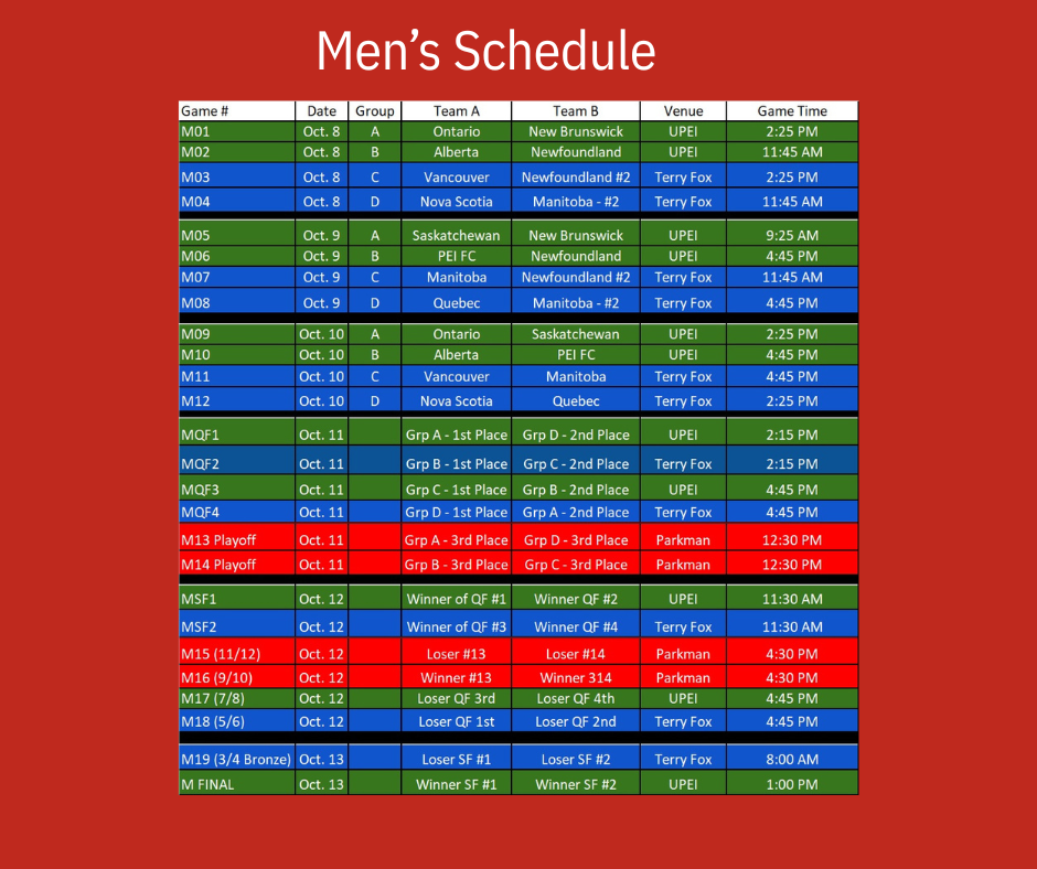 Get Ready PEI!!! U15 Canada Soccer Nationals Schedules