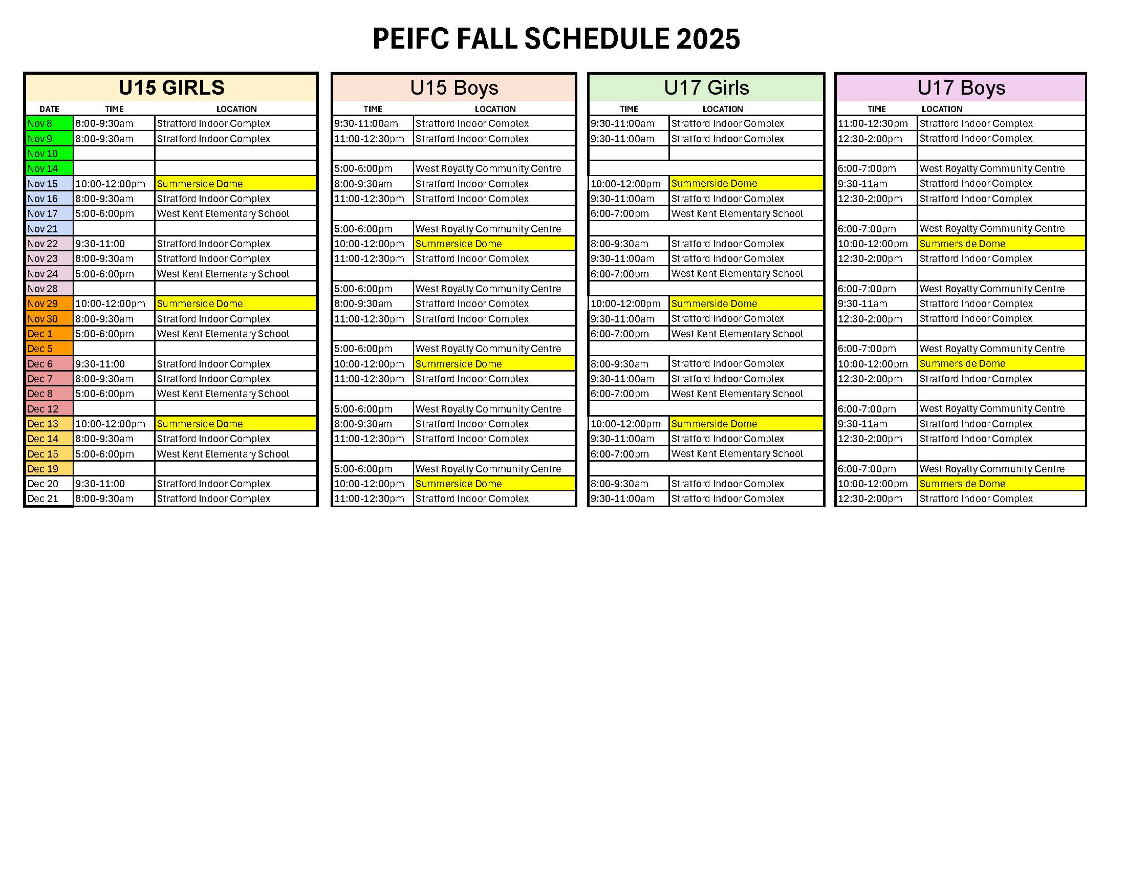 Updated PEIFC Fall Assessment Schedule as of November 6th