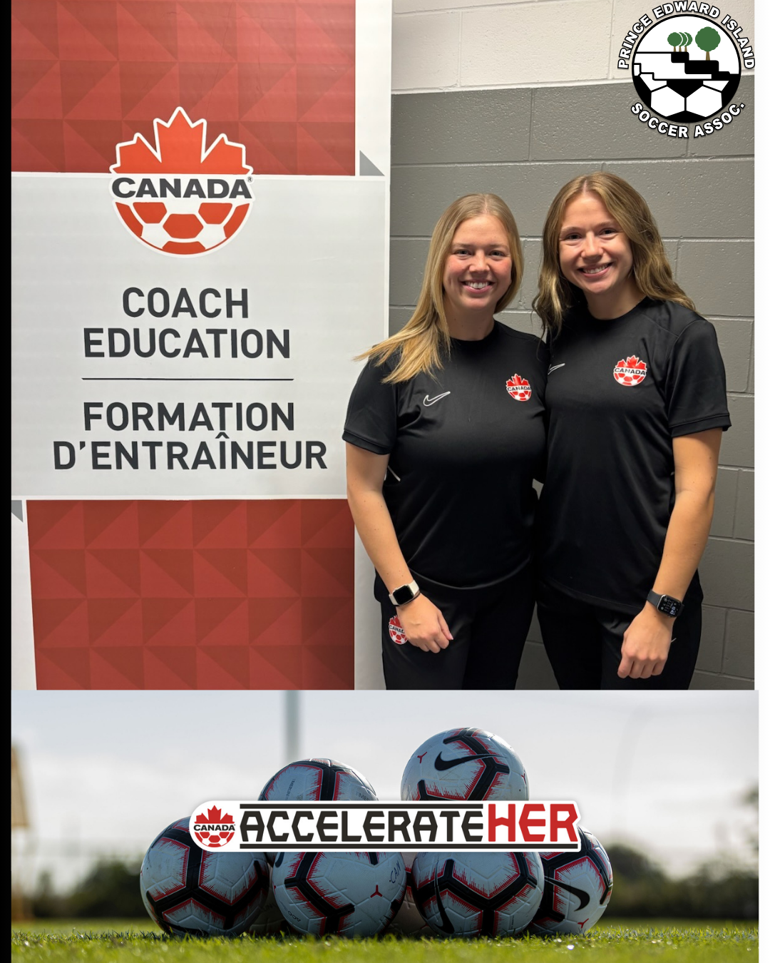 PEI Soccer is proud to celebrate Coaches Darby and Lauren, who are taking part in the Canada Soccer AccelerateHER B Diploma in Montreal this week!